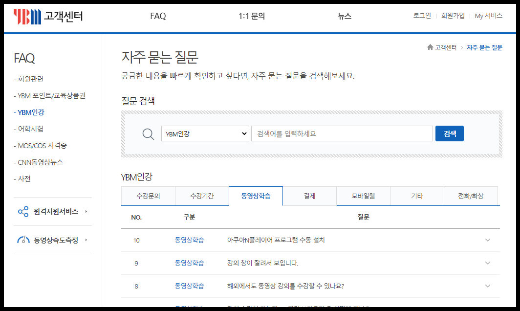 그리고 인강 동영상 시청 방법으로는 ybm 서비스를 통하여 인깅신청을 하신다음에 시청하시면 정확하게 시청이 가능한부분입니다. 물론 동영상 플레이어로 다른 플레이어들을 사용하셔도 좋지만 인강 동영상에 특화되어있는 AquaNPlayer를 통하여 이용하시기 바랍니다.