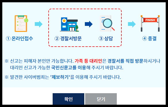 그리고 이제 피해받은 부분에 대한 신고 진행방법으로는 다음과 같이 진행해주시면 됩니다.