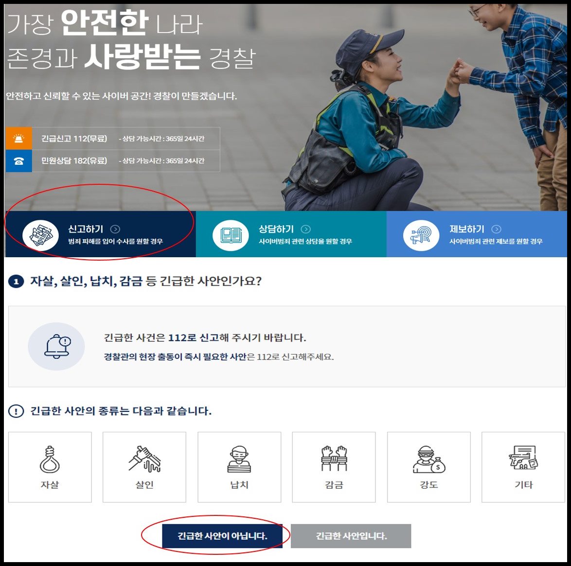 이번에는 온라인으로 사기신고하는 방법 입니다. (경찰청링크) 링크를 참고해주시고 다음과같이 진행하시면 됩니다.
