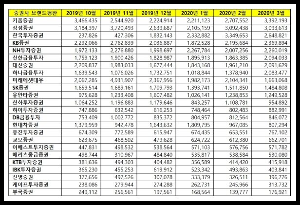 - 첫번째 증권사 종류는 [교보증권, 대신증권, 동부증권, 메리츠종합금융증권, 미래에셋대우증권, 삼성증권, 신영증권, 신한금융투자, 유안타증권, 유진투자증권, 유화증권, 키움증권, 하이투자증권] 입니다. ※ 추천 키움증권