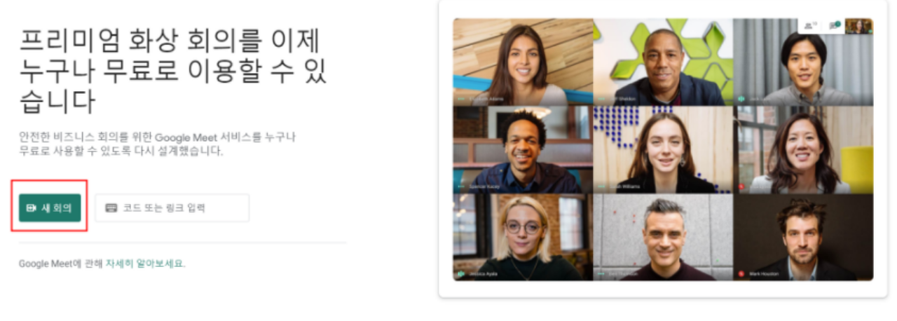 구글 미트 또한 구글 듀오와 비슷하게 사용하는 플랫폼이라고 할 수 있지만 좀더 다양성이 있다고 할 수 있습니다. PPT발표, 수업, 팀회의, 개발미팅, 해외미팅 등 다양하게 이용이 가능합니다. 또 현재는 학원 및 학교에서 수업을 위하여 이용하는 플랫폼중 하나라고 할 수 있습니다.