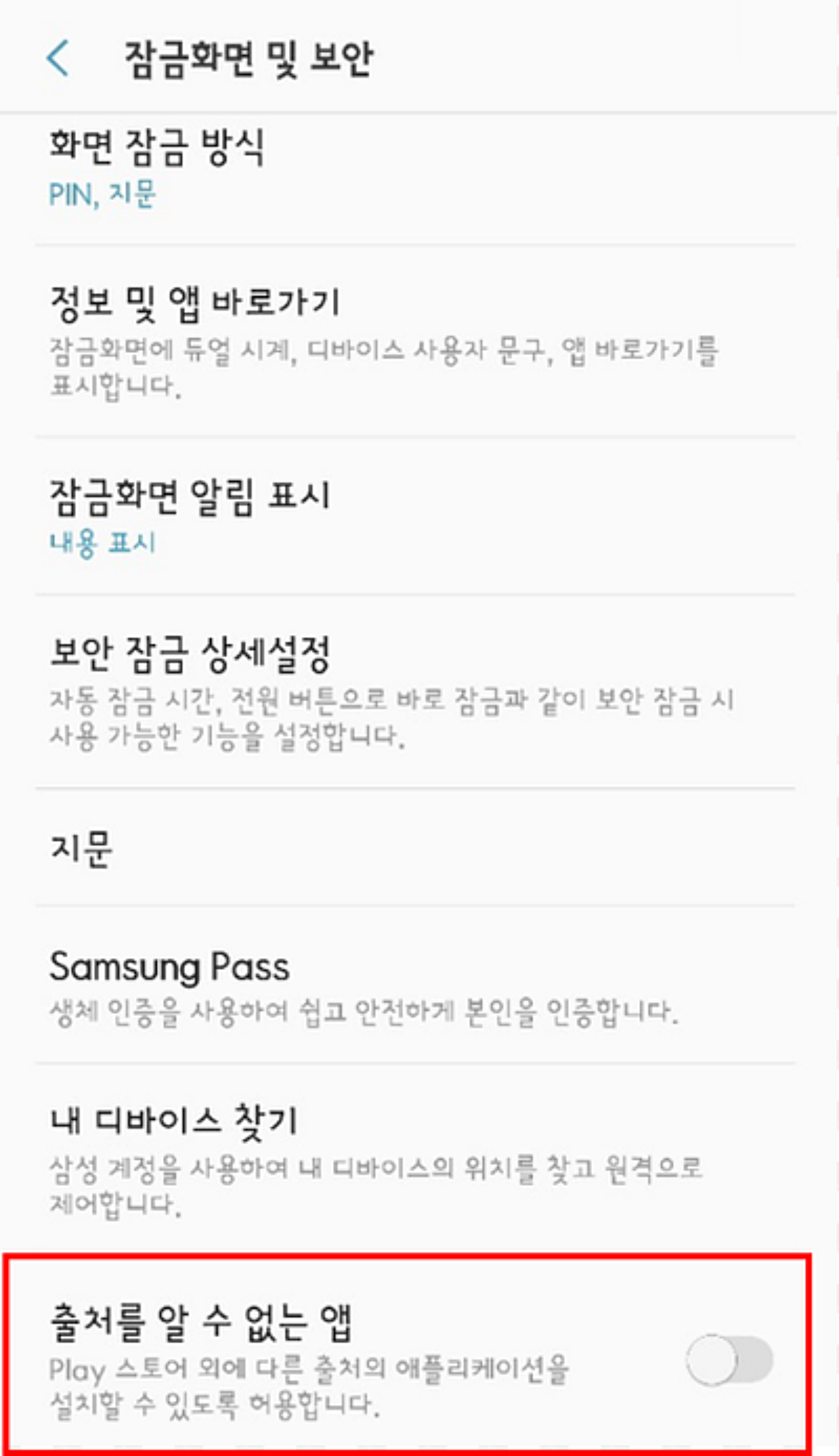 - 알 수 없는 출처의 앱은 절대 설치하면 안됩니다.
