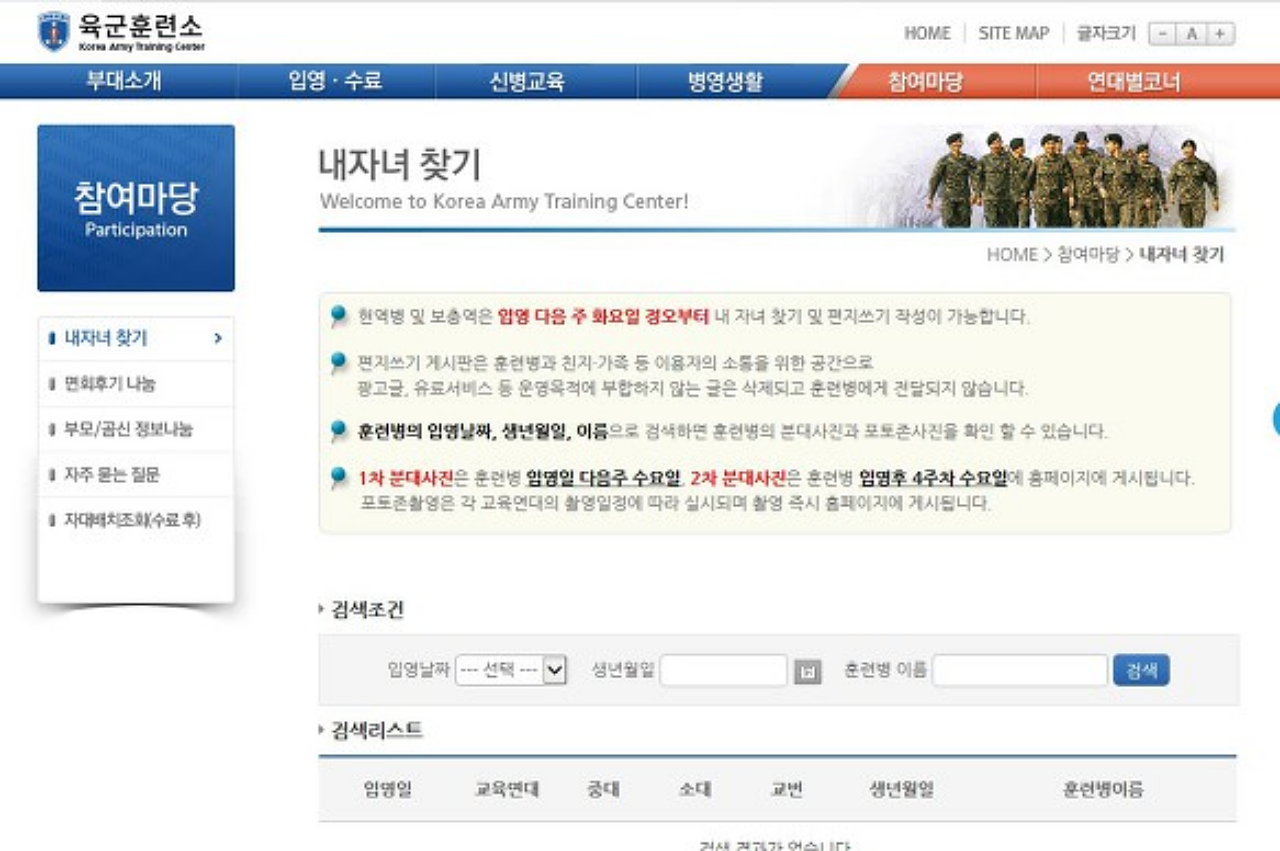 육군훈련소 내자녀찾기 이용방법[논산훈련소]