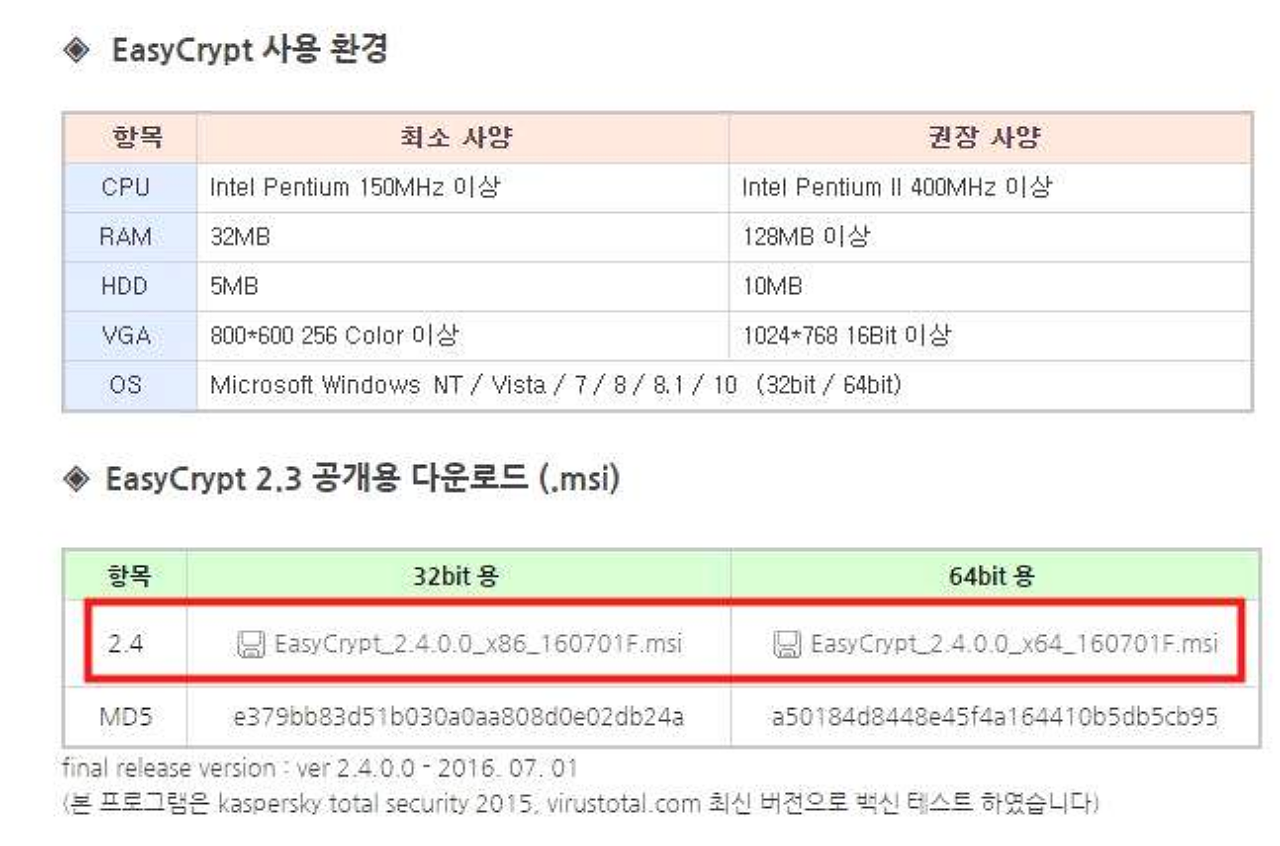 암호화는 고수준입니다. 그리고 SHA 512bit hash 알고리즘 및 AES 256bit 검증된 암호화 알고리즘을 사용해서 강력한 수준의 암호화를 제공 하고 있다 합니다. ezc 복호를 다운 받으시고 공개용 다운로드를 받으시면 됩니다. 사용 환경은 아래 이미지를 참고해주시면 되며 해당 프로그램은 32비트, 64비트가 구분되어있다고 합니다. 그래서 꼭 확인하고 다운받아서 이용하시기 바랍니다. 또한 해당 프로그램을 이용중 암호를 잃어 버리셨다면 다시 찾기는 어려울 수 있으니 이용중에 암호는 꼭 따로 저장해놓고 이용하시기 바랍니다.