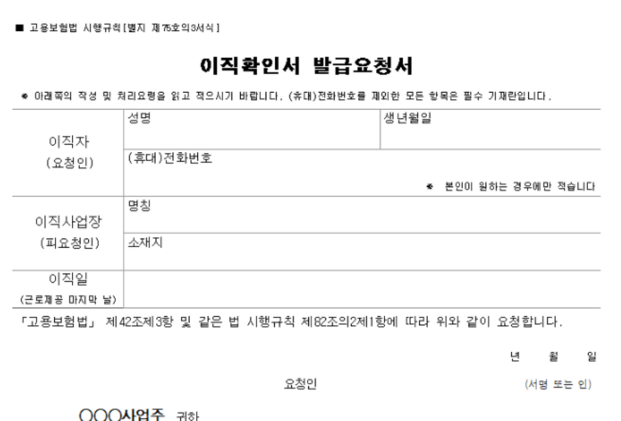 이직확인서 요청 방법으로는 근로자는 사업주에게 요청해야 하며 고용복지플러스센터에 실업급여 수급자격을 신청하면 됩니다. 그리고 고용복지플러스센터에서는 이직자의 자격을 판단하고 승인을 할 수 있습니다. 사업자는 고용플러스센터, 고용보험 홈페이지에 이직확인서를 제출하여야 합니다. 혹시 근로자분들은 이직확인서를 작성해야 될 때 양식이 필요하신 분들은 회사에 요청하시지 말고 아래 양식 파일을 다운받아서 이용하시기 바랍니다. 그리고 위에 말씀드렸지만 이직확인서를 사업장에서 발급 거절하면 과태료가 부과되는 부분이니 꼭 참고하시기 바랍니다.